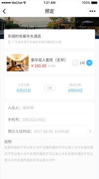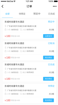 用户在个人中心查看自己的酒店预定情况,根据情