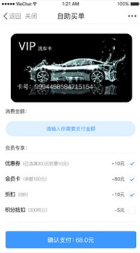 自助买单可按照洗车卡金额、数次、或